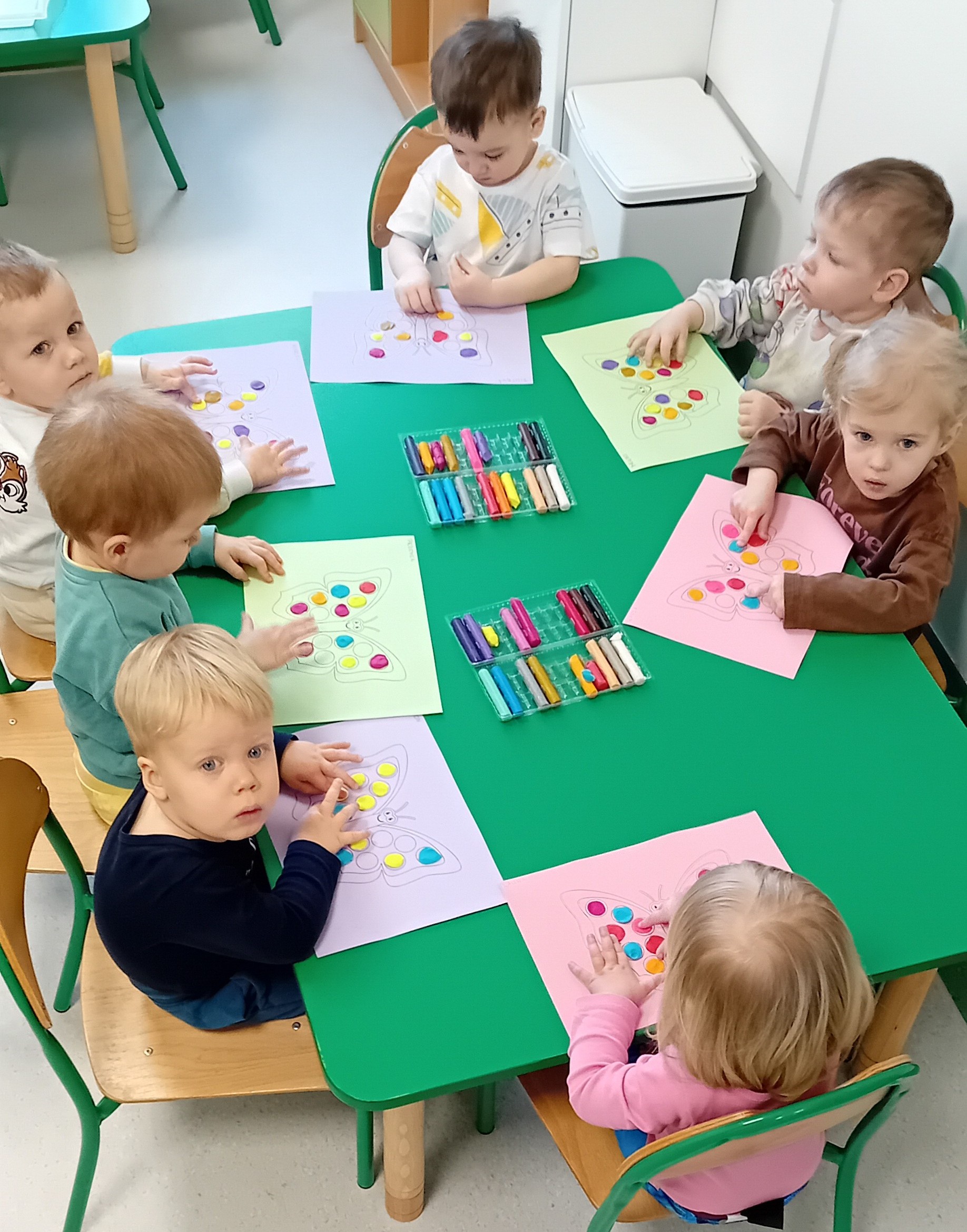 Kolorowe kredki w pudełeczku noszę, kolorowe kredki bardzo lubią mnie. Kolorowe kredki, kiedy je poproszę, namalują wszystko to, co chcę".
